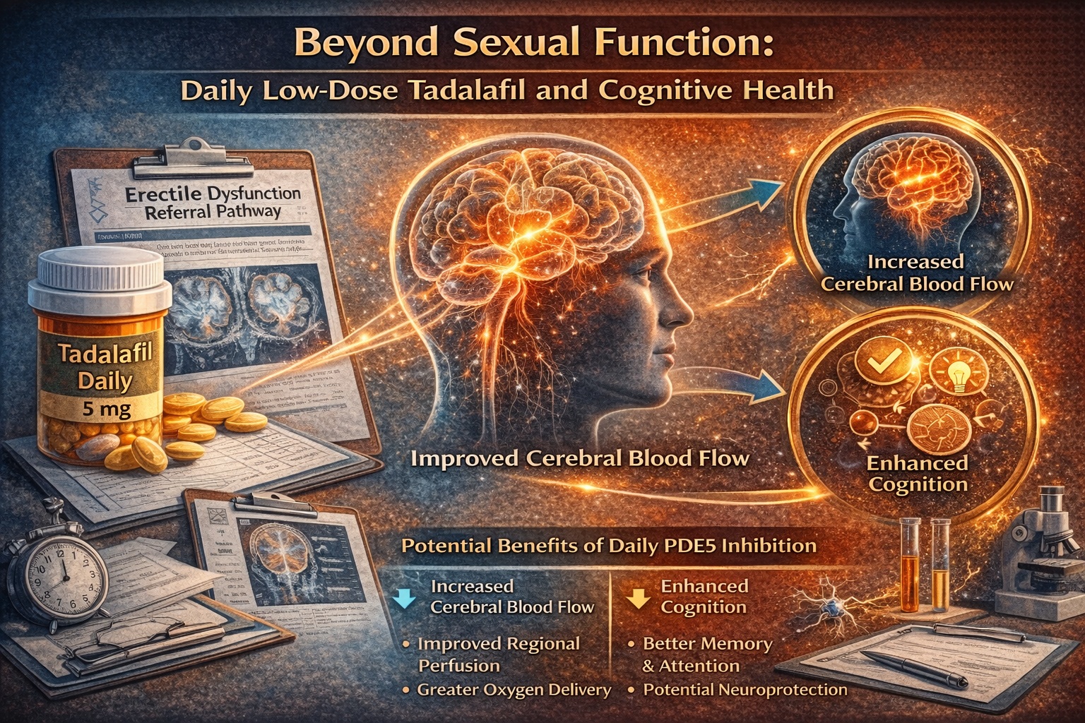 This article explores how chronic tadalafil therapy may affect cerebral blood flow and cognition, and why these findings invite clinicians to rethink the therapeutic boundaries of PDE5 inhibitors.