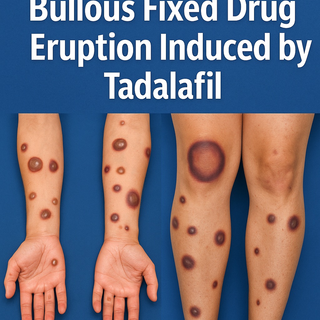 The article at hand focuses on a rare but increasingly relevant trigger of FDE: tadalafil, a phosphodiesterase-5 inhibitor widely used for erectile dysfunction and benign prostatic hyperplasia. While tadalafil is FDA-approved and generally well tolerated, its misuse, particularly in unregulated over-the-counter sexual enhancement supplements, has resulted in unexpected dermatological complications. The reported case of a young male developing generalized bullous fixed drug eruption after consuming liquid tadalafil and honey-based supplements highlights the clinical and public health implications of this issue.