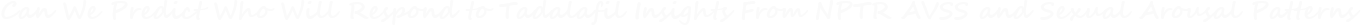 Predicting response to tadalafil is no longer an aspirational goal but an achievable, evidence-based process. By integrating NPTR, AVSS, and penile Doppler parameters, clinicians can identify which men will benefit from therapy, which require alternative strategies, and which may experience long-term improvement beyond pharmacologic dependence.