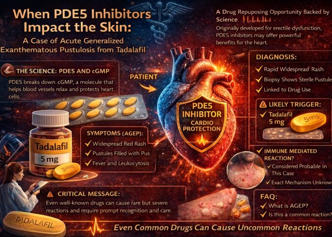 Introduction: The Predictable Drug with an Unpredictable Reaction In clinical medicine, familiarity often breeds confidence. Drugs that are widely prescribed, well studied, and generally safe—such as tadalafil—tend to inspire a sense of predictability. Physicians know what to expect: efficacy, a…