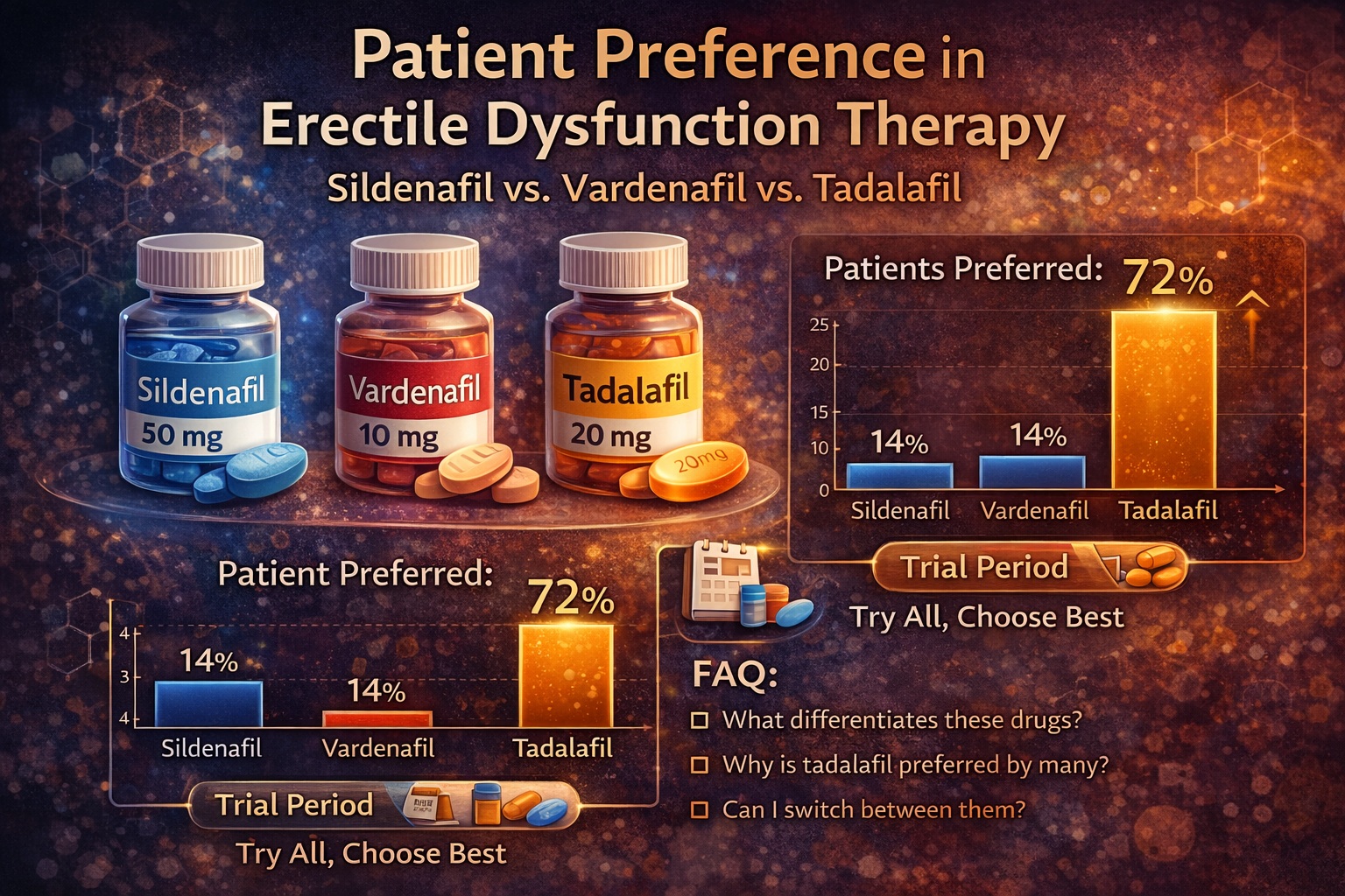 The emergence of oral phosphodiesterase type 5 (PDE5) inhibitors transformed ED management. Sildenafil, vardenafil, and tadalafil offered safe, effective, and non-invasive solutions. Yet with multiple options came a new question: not which drug works, but which one is preferred.