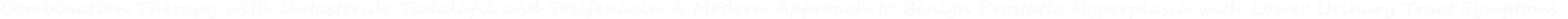 The combination of dutasteride, tadalafil, and solifenacin represents a rational, evidence-supported advance in the medical management of BPH with LUTS. Dutasteride addresses obstruction, solifenacin suppresses hyperactivity, and tadalafil safeguards sexual health while improving urinary symptoms.