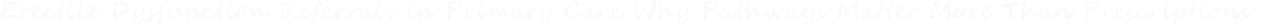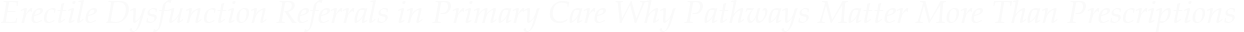 Erectile dysfunction (ED) occupies a curious position in modern clinical practice. On one hand, it is common, well recognized, and supported by clear evidence-based treatments. On the other, it is frequently reduced to a single symptom rather than approached as a multidimensional clinical condition. This contradiction becomes most visible at the point of referral from primary to secondary care.
