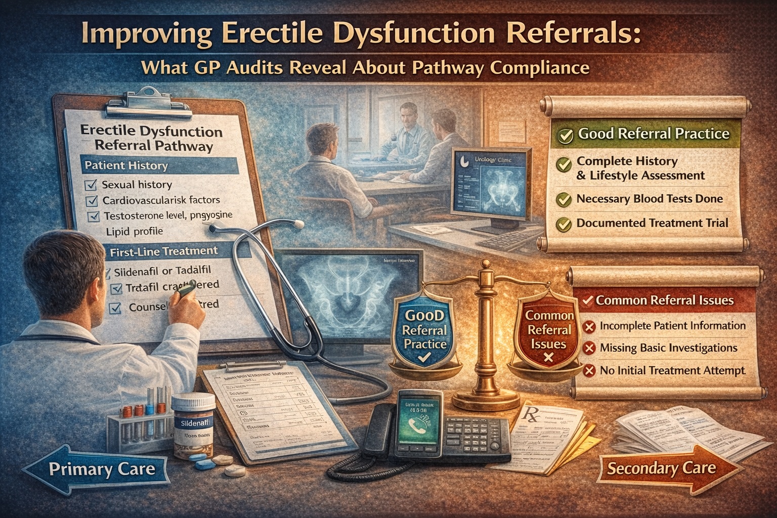 In the UK healthcare system, general practitioners (GPs) serve as the gatekeepers to specialist services. For erectile dysfunction, this role is guided by structured referral pathways designed to ensure that patients receive appropriate investigations, initial treatment, and psychological support before secondary care involvement. In theory, this optimizes patient outcomes and protects specialist resources. In practice, the system often falls short.