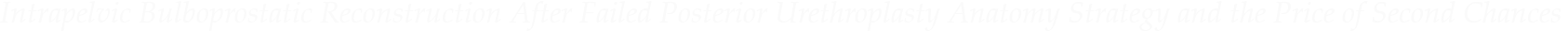 It must be emphasized that intrapelvic bulboprostatic repair is not a universal solution. It is a technically demanding procedure best reserved for high-volume reconstructive centers with extensive experience in posterior urethral surgery.