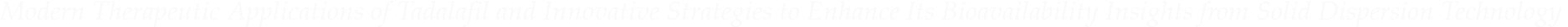 This challenge has driven pharmaceutical scientists to search for formulation strategies capable of enhancing tadalafil’s solubility without altering its chemical identity. Among these strategies, solid dispersion technology—particularly using hydrophilic carriers—emerges as one of the most efficient, elegant, and mechanistically rational approaches. Studies such as the one reviewed here provide compelling evidence that hydrophilic polymer–based solid dispersions can dramatically enhance tadalafil dissolution, improve pharmacokinetic parameters, and yield amplified pharmacodynamic outcomes—even demonstrating measurable aphrodisiac effects in experimental animals.