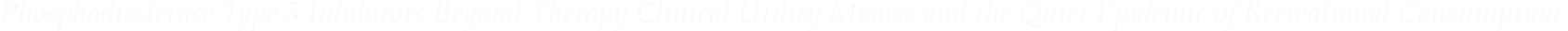 Phosphodiesterase type 5 inhibitors (PDE5 inhibitors) have transformed the management of erectile dysfunction (ED), offering an effective, well-tolerated, and convenient oral therapy. Drugs such as sildenafil, vardenafil, and tadalafil have become synonymous with modern sexual medicine, restoring not only physiological function but also psychological confidence. Yet, as with many successful pharmacological innovations, their widespread availability has blurred the boundary between treatment and enhancement.