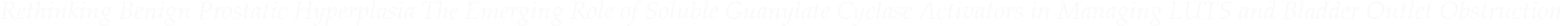 The exploration of soluble guanylate cyclase activators marks an exciting and scientifically grounded advancement in the management of benign prostatic hyperplasia and LUTS. As shown in the workshop summarized in the paper , sGC activators such as cinaciguat hold potential to correct underlying molecular dysfunction, restore cGMP signaling, reduce fibrosis, improve urethral patency, and normalize bladder mechanics. Their ability to function under oxidative stress distinguishes them from PDE5 inhibitors and positions them as promising candidates for patients who fail existing therapies.