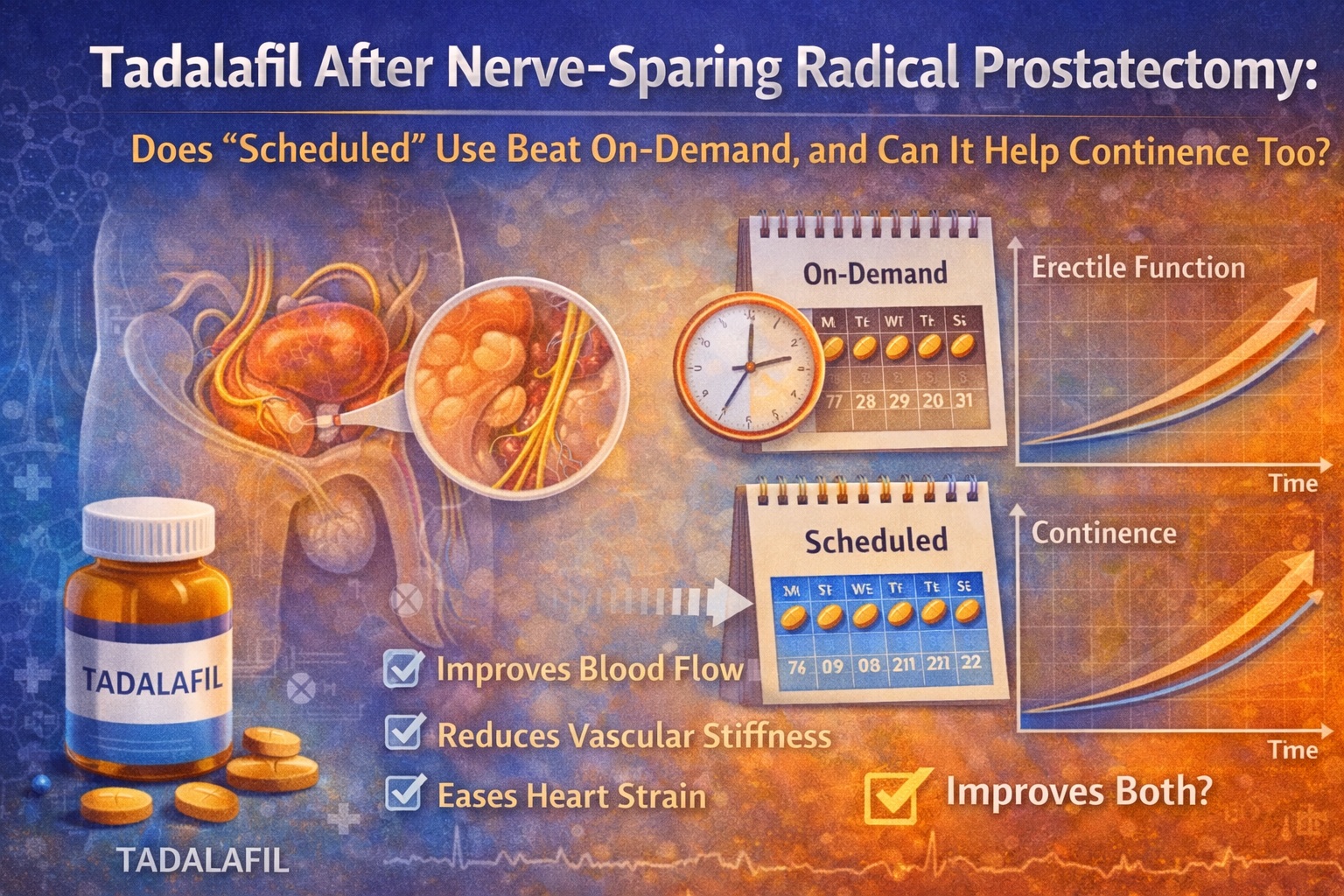 The study behind this article tackles both questions directly by comparing tadalafil 20 mg three times per week versus tadalafil 20 mg on-demand in men undergoing BNSRP, with a control group receiving no PDE5 inhibitor. The headline is simple: scheduled tadalafil improved erectile function at 12 months more than on-demand or no tadalafil, but it did not improve continence recovery. The details, however, are where the real clinical value lies.