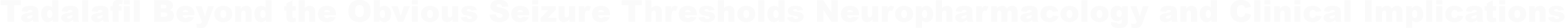The evidence suggests that while tadalafil is generally safe, it carries nuanced effects on seizure susceptibility and antiepileptic drug activity. These effects are subtle, selective, and highly context-dependent.