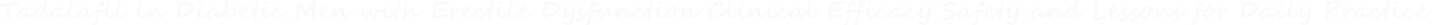 While larger randomized studies are needed, current evidence strongly supports tadalafil as a front-line therapy in diabetic ED. For clinicians, this means treating not just a symptom but a vascular syndrome, with tadalafil serving as both a restorative agent and a symbol of integrated patient-centered care.